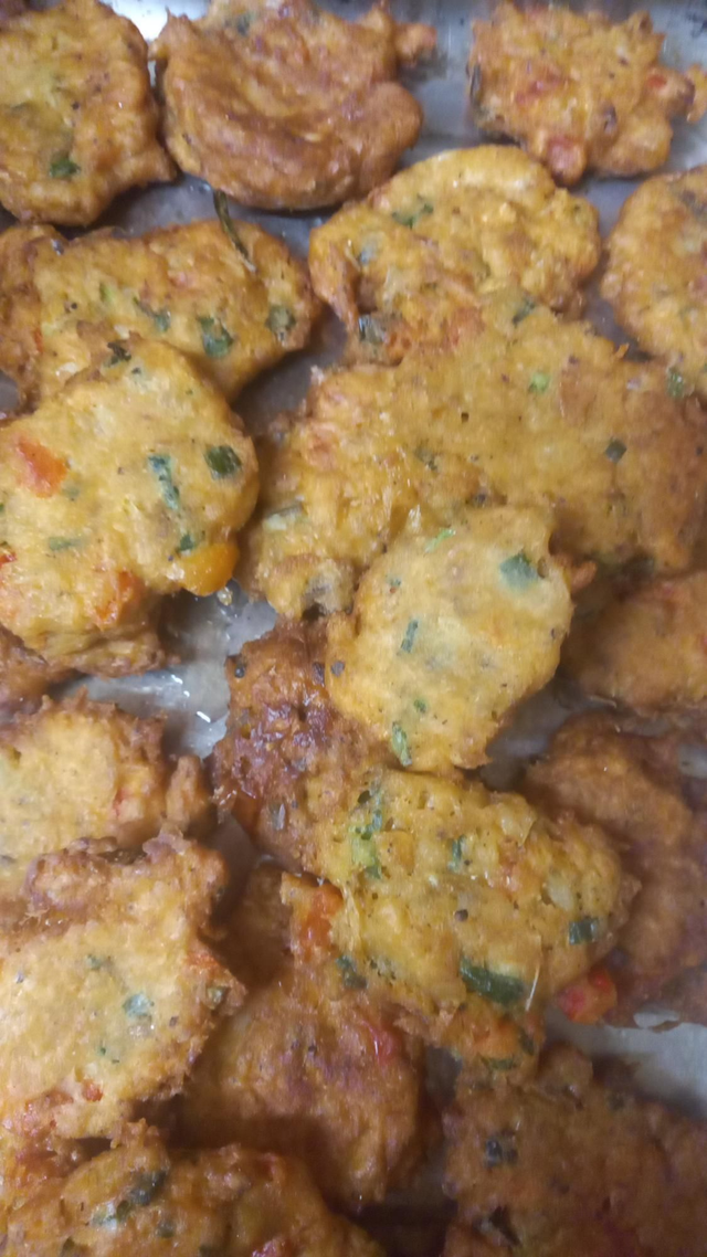Saltfish Fritters with spices and red onions peppers tomatoes and much more