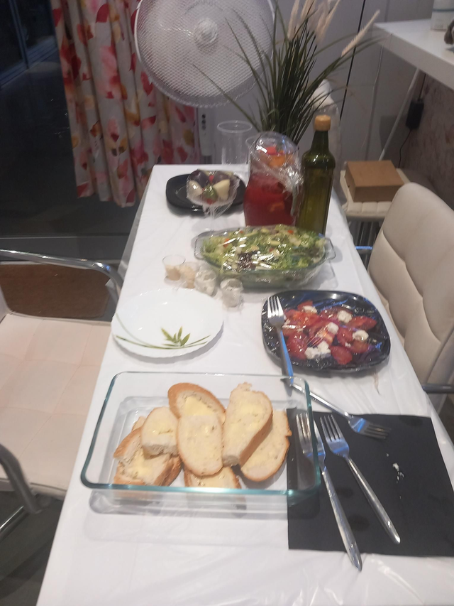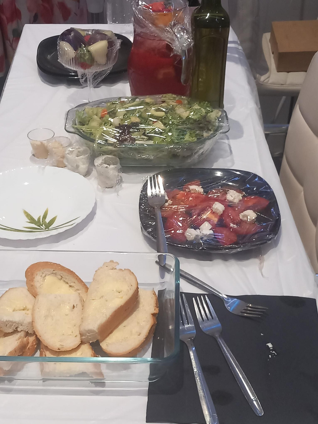 Sharing Platter Greek Salad Natural Fruity Juice & Bread